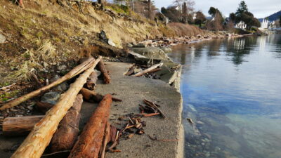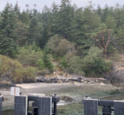 The Land Bank is collaborating with Friends of the San Juans (FOSJ) to advance shoreline restoration efforts on Orcas and Lopez Islands. Led by FOSJ Science Director, Tina Whitman, projects at Eastsound Waterfront Park (Orcas) and Upright Head Preserve (Lopez) will enhance shoreline conditions to support forage fish spawning habitat and combat erosion. Whitman secured grant funding from Salmon Recovery Funding Board (SRFB) and US Fish and Wildlife to remove an old concrete cistern and associated debris from Eastsound Waterfront Park’s shoreline and establish native vegetation for improved resiliency to increasing shoreline erosion. Pending permitting and bid solicitation, work could begin this summer.