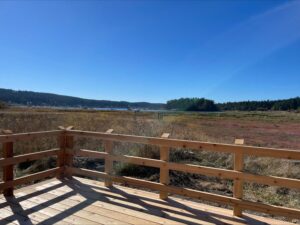 Oodles of trail brushing, noxious weed pulls, and vandalization repair kept Lopez stewards on the move. We’re happy to report the Weeks Wetland trail platform that was damaged in a fire on July 5th, is once again available for public enjoyment! Bring your binoculars for fall birdwatching or sit and enjoy the view of Fisherman Bay. To complete the platform project, the Land Bank is looking for a volunteer with wood working skills to put new trim on the interpretive signs. If that sounds like you, please email Lopez Preserve Steward, Amanda Wedow at amandaw@sjclandbank.org.