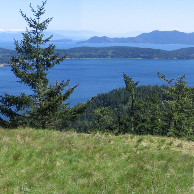 Diamond Hill rises to over 600 feet above the waters of Eastsound and Harney Channel. This diverse and secluded 45-acre preserve includes grassy meadows, a quiet wetland that supports breeding amphibians, and abundant wildlife. Most of the preserve was purchased from the Washington State Department of Natural Resources. Five acres were donated by a generous neighbor.