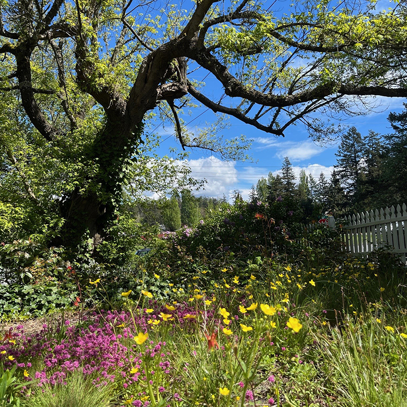 Driggs Park is a public park in the heart of Friday Harbor and provides 0.15-acres of outdoor space for island residents and visitors to sit, eat lunch, or chat with friends. The Conservation Land Bank office is located directly adjacent to Driggs Park and occupies the historic Driggs house. The Driggs house was built around 1895 and was inhabited by G.B Driggs and his family. This historic property looked down upon the Driggs’ orchard and strawberry fields. It is possible that the apple tree and pear tree currently in Driggs Park could have been part of the Driggs’ original orchard. The Driggs house has been largely unchanged and maintains many of the original features. Driggs Park Preserve was acquired in 2018 with the objective to offer public access and maintain history of the site while incorporating native plants and landscaping.