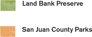 The popular Eastsound Waterfront Park preserves views of the water from the village and allows public access to the shoreline and nearby publicly-owned Indian Island. Located on the main entrance road to Eastsound Village, the Conservation Land Bank’s first acquisition in 1993 added .45 acres and 100 feet of shoreline to the existing county park. In 2003, the Land Bank acquired an adjacent one-acre parcel and 356 feet of waterfront. An additional .45 acre property abutting the eastern boundary of the park was acquired later to further expand the size of the park and increase water frontage by another 100 feet. Ownership and management of the 2.5 acre park is shared by the Land Bank and San Juan County Parks. A grant from the Washington State Department of Natural Resources and private contributions helped purchase a portion of the park.