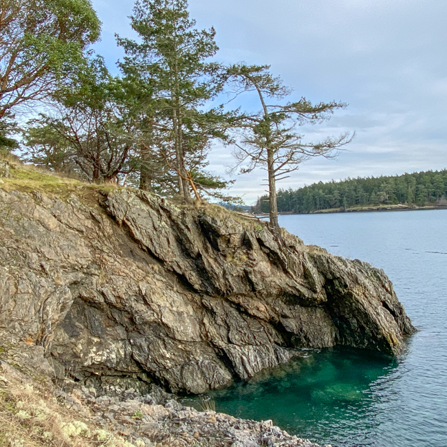 At the end of 2016, the Conservation Land Bank received the spectacular gift of Kellett Bluff Preserve, an 80-acre property on Henry Island, which has two shorelines extending over 3,100 feet in total. The western shore on Haro Strait hosts cormorant rookeries, and above, Garry oak savannah reaches to the summit with expansive views to Vancouver Island. On the east, dense forests of the interior yield to Open Bay with several pocket beaches nestled amidst rocky outcrops.